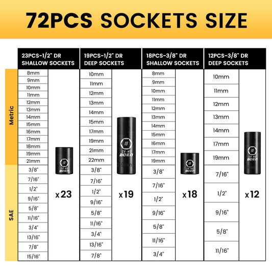BOENTools 119pc 1/2"&3/8" Cr-MO Deep Impact Socket Set