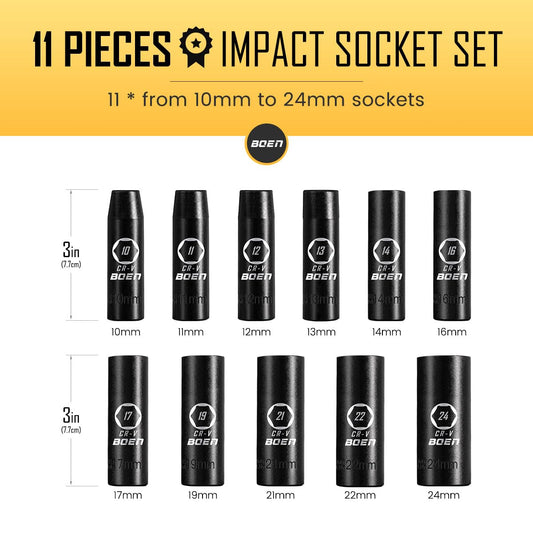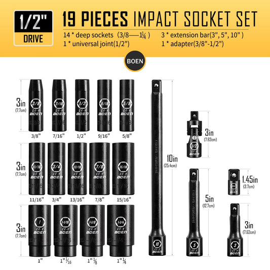 BOENTools 1/2" Drive Impact Socket Set