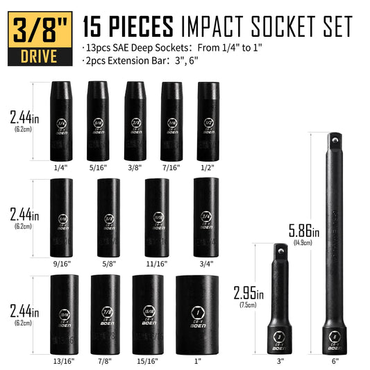 BOENTools 3/8" Drive Deep Impact Socket Set