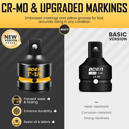 boen PRO 1" F to 3/4" M Impact Socket Reducer, Impact Driver Conversions for Impact Wrench, CR-MO Steel, Embossed and Painted Marking