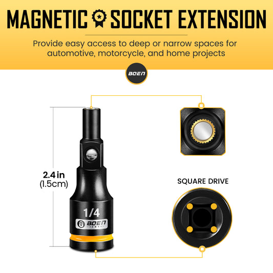BOEN Magnetic Socket Extension, 1/4" Drive Magnetic Socket Adapters for Keep Bolts, CR-MO Steel Extension Bars with Magnetic Tips