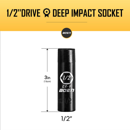 BOEN Tools 1/2" Dr 1/2 Inch SAE Deep Sockets