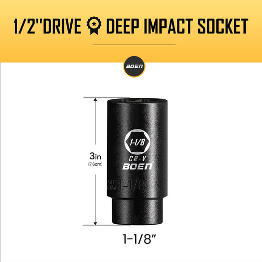 BOEN Tools 1/2" Dr 1-1/8 Inch SAE Shallow Impact Socket