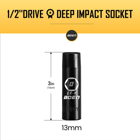 BOEN Tools 1/2" Drive 13mm Metric Deep Sockets