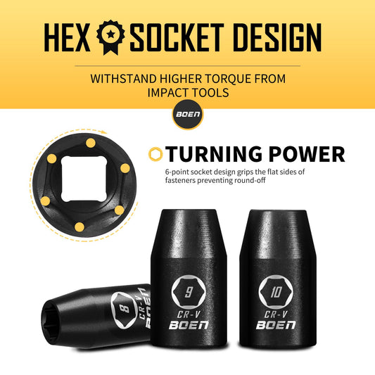 BOEN Tools 1/2" Drive 8/9/10mm Metric Shallow impact Sockets