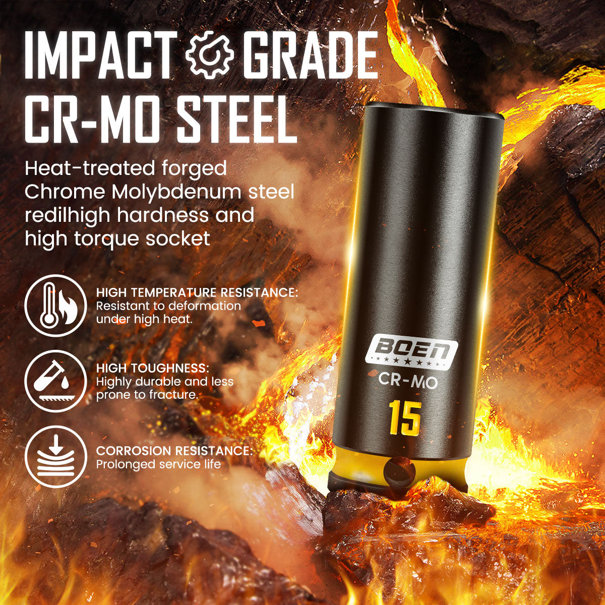 - CLEAR EMBOSSED MARKINGS: Adopting the latest embossed technology, the boen socket can be easily found among a pile of tools. It is more durable than laser marking