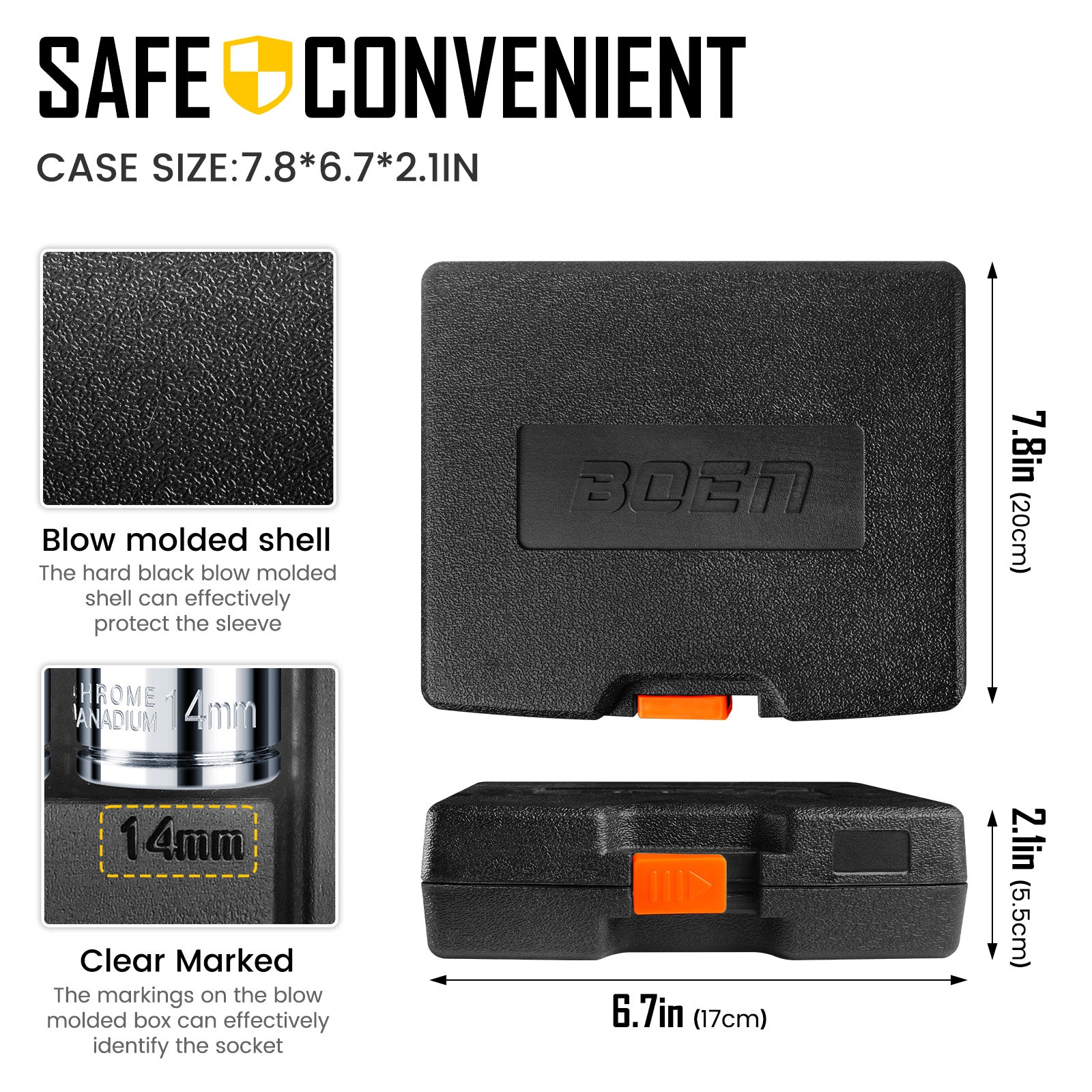 - CONVENIENT TO CARRY AND STORE: Black blow molded casing provides excellent protection and storage for sockets to prevent damage and loss. Blow molded casing with label slots for easy storage and organization of sockets. The box is lightweight, efficient and convenient