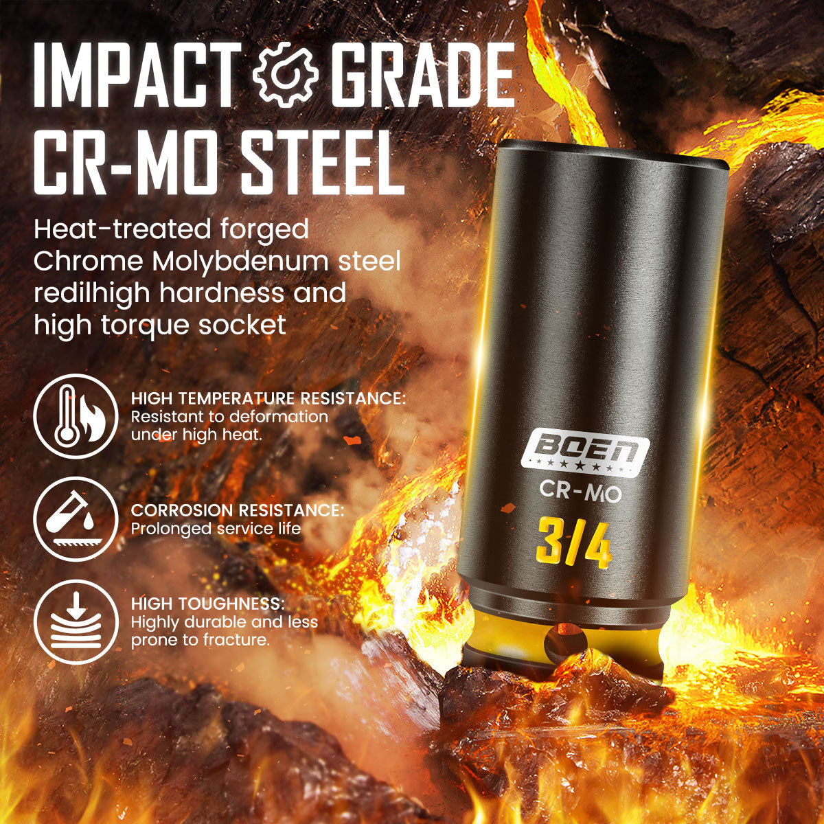 - CLEAR EMBOSSED MARKINGS: Adopting the latest embossed technology, the boen socket can be easily found among a pile of tools. It is more durable than laser marking