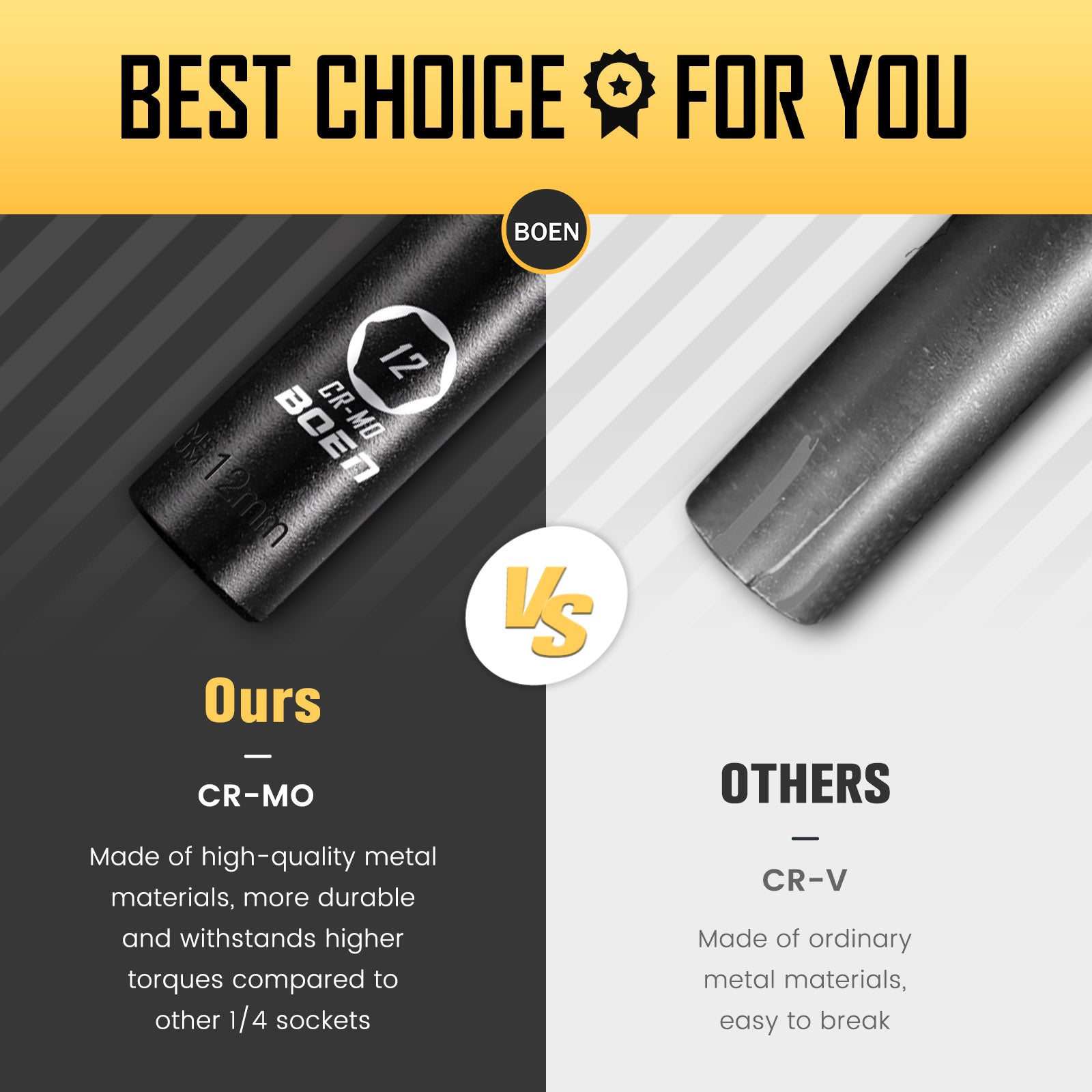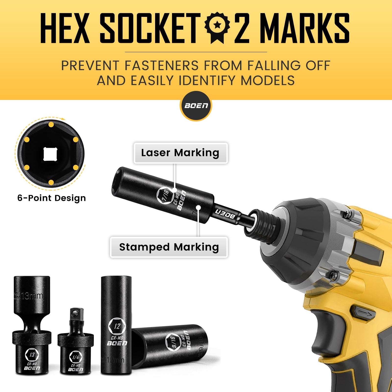 - 【Protective Coating & Usage Tips】A thin layer of anti-rush oil is applied to each socket to ensure they arrive in perfect condition. Simply wipe clean before first use. For best performance and safety, always align the socket with the BOEN logo facing upward when attaching to drive tools.