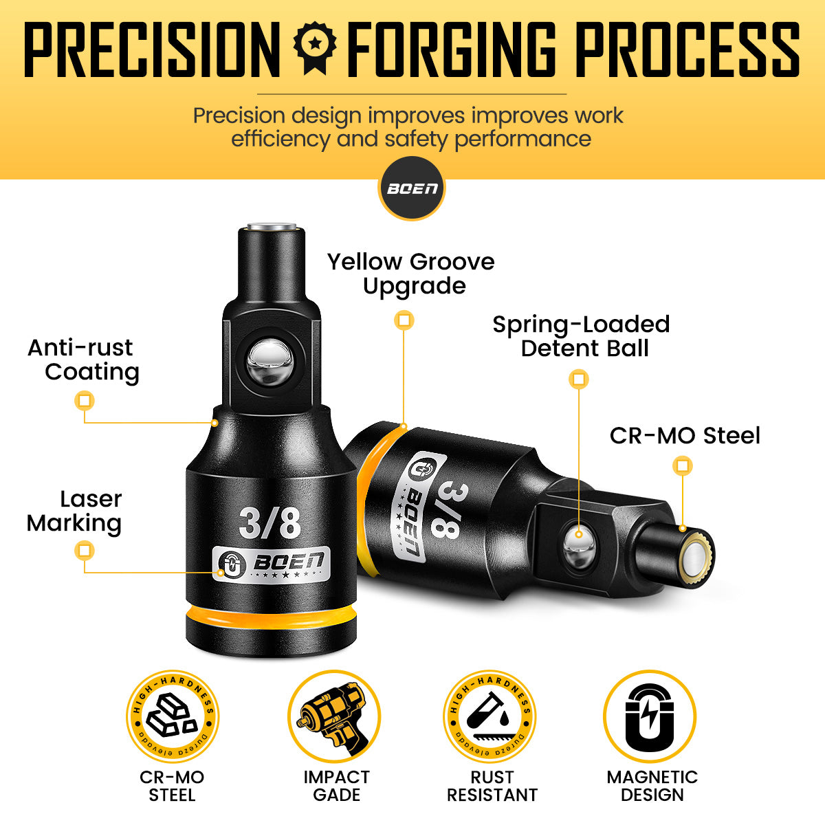- Convenient Tool: Power through tough jobs with the BOEN 3/8" Drive Magnetic Socket Extension. It allows you to easily tighten screws in tight, deep holes such as inside engines or machinery. Utilizing the magnet at its tip to securely hold bolts and sockets, it effortlessly solves the common problem of parts slipping out and being difficult to install.