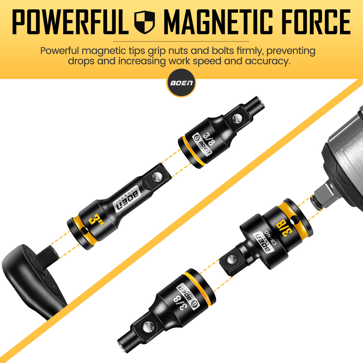 BOEN Magnetic Socket Extension, 3/8" Drive Magnetic Socket Adapters for Keep Bolts, CR-MO Steel Extension Bars with Magnetic Tips